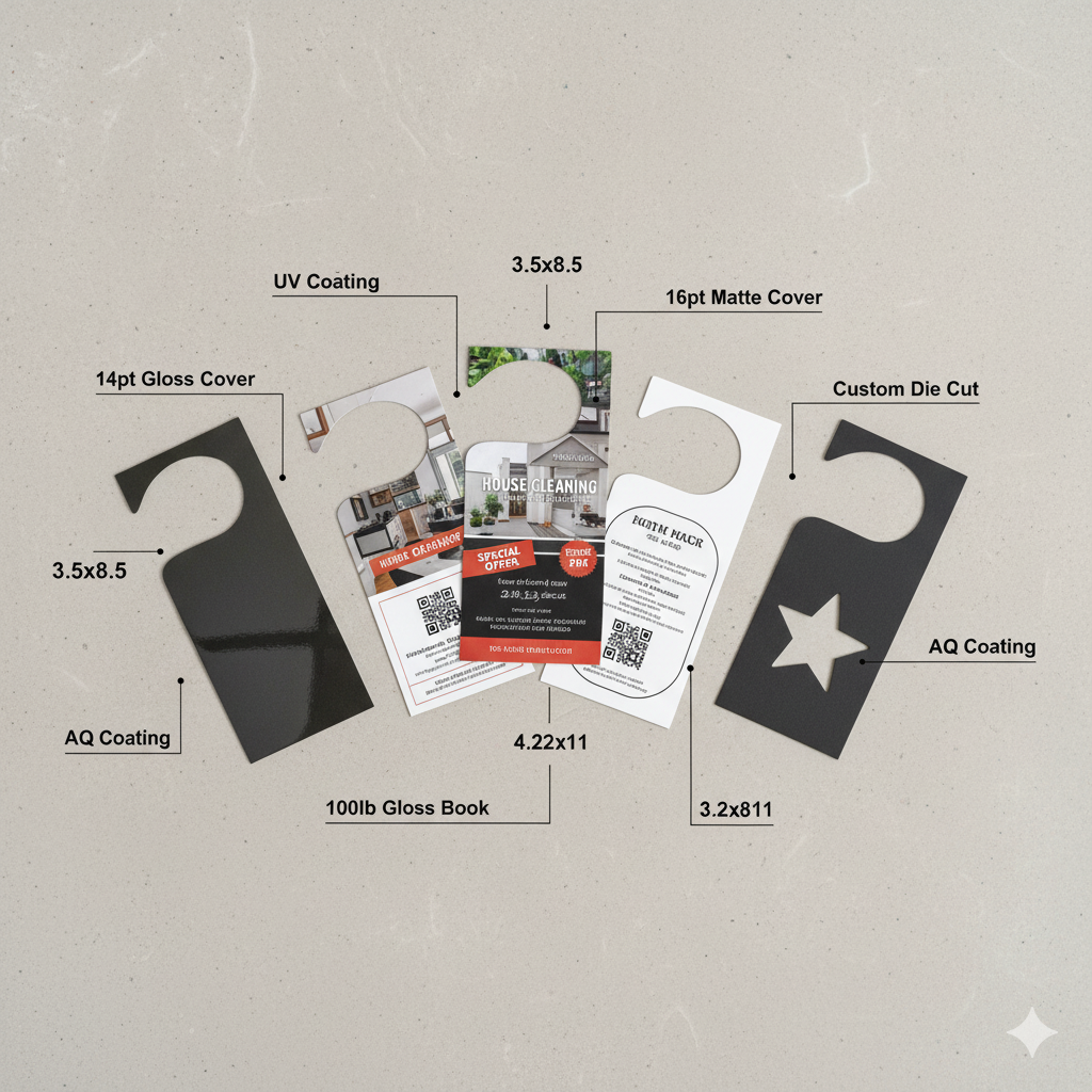 Attention-grabbing door hangers with custom die-cut.